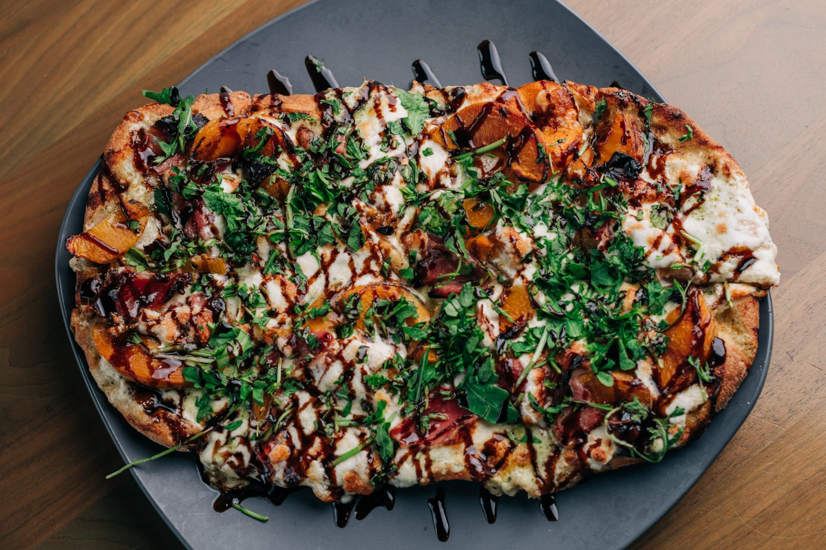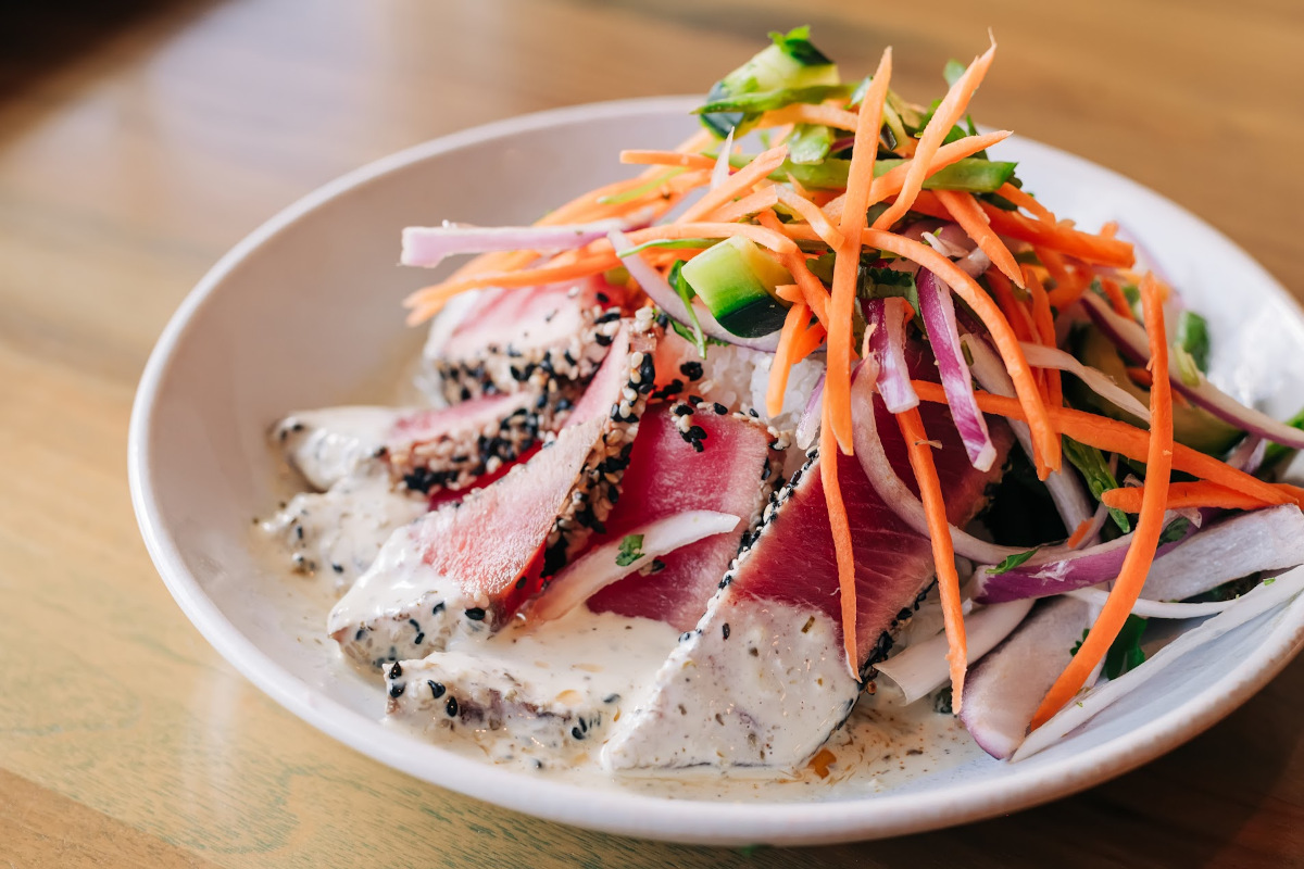 The menu focuses on elevated comfort food — burgers, bowls, shareable plates, and chef-driven favorites — alongside a thoughtful cocktail program and a well-curated selection of beer and wine.